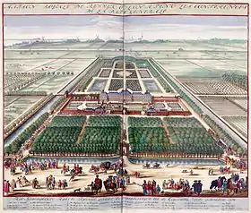 ![]() رسمة لقصر هوس تير نيوفبورغ في مدينة رايسفايك، المكان الذي وقع به الصلح | |