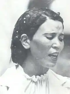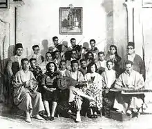 صليحة ضمن فرقة الرشيدية. في وسط الصورة أيضاً خميس ترنان