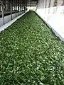 - التجفيف: يتم التجفيف من أجل "إنهاء" إعداد الشاي تمهيدًا للبيع. ويمكن القيام بذلك بطرق لا حصر لها بما في ذلك بالتحميص في المقلاة، أو التعريض في الشمس، أو تجفيف الهواء، أو الخبز. عادة ما يكون الخبز هو الأكثر شيوعًا. يجب توخي الحذر الشديد لعدم الإفراط في طهي الأوراق.[17] تجفيف الشاي الناتج هو المسؤول عن العديد من مركبات النكهة الجديدة التي لها أهمية خاصة في الشاي الأخضر.[21]