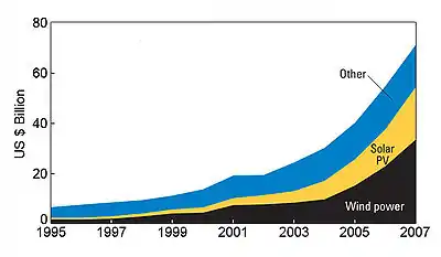 |CitationClass=تم تجاهله (مساعدة); مفقود أو فارغ|title=(مساعدة) - EERE News: Clean Energy Investments More Than Double in 2006 نسخة محفوظة 8 أبريل 2020 على موقع واي باك مشين.