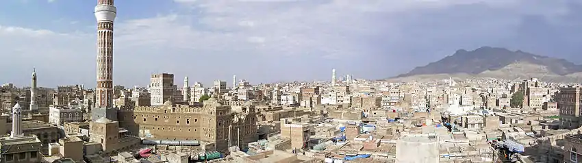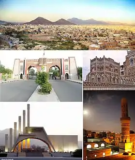 صنعاء هي العاصمة السياسية (رسمياً) لليمن وعاصمة إقليم أزال وواحدة من أقدم المدن المأهولة باستمرار ولها تاريخ من القرن الخامس قبل الميلاد على الأقل.[7] تقع في وسط البلاد في منطقة جبلية عالية على جبال السروات، ترتفع عن سطح البحر 2300 متر. وقديماً كانت المدينة لا تحتل سوى مساحة صغيرة من قاع صنعاء الفسيح الذي يمتد من جبل نُقم شرقاً وجبل عيبان غرباً، ولكنها تزايدت في العهود الإسلامية واتسعت دائرة سورها. وفي القرون الأخيرة استحدثت في غربها بير العزب تلاصقها وتفوقها مساحةً، وكان للوجود العثماني اليد الطولى في إنشائها، وفي غربي بير العزب أقيم في القاع في القرن السابع عشر حي يهود صنعاء. ومنذ قيام ثورة 26 سبتمبر 1962 بدأت صنعاء تشهد تغييرات هائلة وامتدت صنعاء القديمة و(بير العزب) خارج أسوارها وتكثف زحفها العمراني في جميع الاتجاهات.[8] يطلق عليها أمانة العاصمة في الأوساط الرسمية، وهي المركز الإداري لمحافظة صنعاء، ويبلغ عدد سكانها قرابة 2,957,000 نسمة بحسب إسقاطات عام 2015، [3] تقسم أمانة العاصمة إدارياً إلى 9 مديريات، تكتسب أهميتها باعتبارها العاصمة السياسية والتاريخية للجمهورية اليمنية، حيث تتركز فيها الوزارات والمؤسسات والمصالح الحكومية، فضلاً عن النشاط التجاري والصناعي الواسع، تمتاز مدينة صنعاء بطابع معماري فريد مما أهلها لتكون من ضمن المدن التاريخية العالمية، وهي واحدة من مدن العالم الأكثر جمالاً [9] ويتميز مناخ العاصمة بالاعتدال في فصل الشتاء وفي فصل الصيف. صنعاء القديمة من مواقع التراث العالمي لليونسكو ولها طابع مميز بسبب الخصائص المعمارية الفريدة، وعلى الأخص المباني متعددة الطوابق المزينة بأشكال هندسية.[10][11]