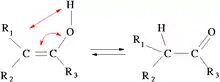 في هذا التفاعل تنزح ذرة من الهيدروجين مع تغيير مكان الرابطة المزدوجة.