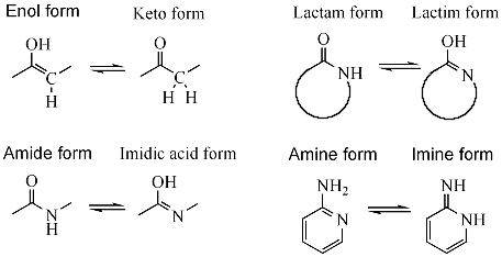 في محلول من مركب قابل لعملية التاوتمرة، يتم إنشاء توازن بين التوتوميرين الاثنين (ازواج ايزوميرات الشكل)