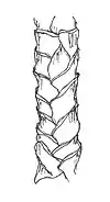 يتميز سطح الألياف الصوفية بتداخل خلايا سطحية تسمى الحراشف. يمكن أن نجد في 1 سم من الصوف الناعم أكثر من 700 حرشفة، بينما 270 حرشفة تغطي 1 سم من الألياف الخشنة. ويكون اتجاه الحراشف التي تشكل قشرة الشعرة من الجذر نحو رأس الشعرة. وفي وسط بنية الليف يوجد النخاع أو اللب، وهي عبارة عن قناة مجوفة في مركز الليف. يكون نخاع الليف الخشن محتلا 90% من المقطع العرضي لليف، بينما يكون صغيراً في الليف الناعم الدقيق ومتقطعا على طول الليف أحياناً. المقطع العرضي لليف الصوف إهليلجي أو بيضوي الشكل.