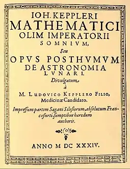 | (باللاتينية: Somnivm, seu opvs posthvmvm de astronomia lvnari) | |