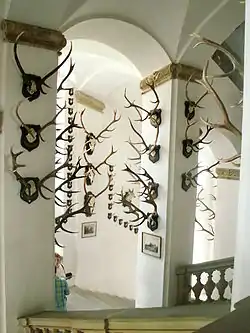 وكانت هناك في القلاع والحصون خدم مختصون فقط بهذه الرياضة يعنون بالكلاب والصقور والعناية بأدوات الصيد، حيث كانت غرفة مقتنيات الصيد التي تحتوى على بنادق ومعدات الصيد والرؤوس المحنطة وتذكارات الحيوانات من أهم مزارات القصور ومن علامات النبل والثراء.