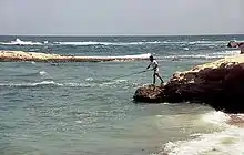 يقوم الصياد بإلقاء سمكة اصطناعية مزودة بصنانير ثلاثية في الماء ثم يستعيد الخيط بحذر في محاولة منه لإغراء السمكة كي تأكل الطعم، أما في الرمي فوق الموج فيجب استعمال طعم يقتات عليه السمك طبيعياً كالدود و الرخويات والأسماك الصغيرة وغيرها حيث يتم تزويدها بصنارة وإضافة ثقل يزن بين 20 و 150 غرام إلى الخيط الرئيسي ثم إلقاؤه لمسافة بعيدة تتراوح بين 60 و250 متر أو أكثر.