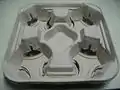 صينية مصنوعة من اللدائن عليها أبريق شاي وأكواب.