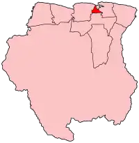 خريطة سورينام تبين موقع ضاحية وانيكا
