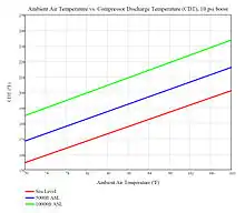 - : درجة حرارة الهواء عند مخرج الضاغط.
