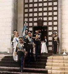 محمد رضا بهلوي في زيارته الرسمية لقبر والده عقد 1970م مع أسرته.