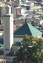 - أسفل يسار: زاوية مولاي إدريس الثاني في مدينة فاس المغربية هي مزار مخصصة لضريح إدريس الثاني