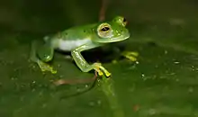 ضفدع الزجاج هو اسم لفصيلة من الضفادع، لون جلد معظمها أخضر فوسفوري، غير أنها تتميَّز بشفافيته التي منحتها اسمها. ويمكن رؤية جميع الأحشاء الداخلية للضفدع عبر هذا الجلد الشَّفاف، مثل القلب والكبد والجهاز الهضمي والأعضاء الأخرى. تقطن هذه الحيوانات في قارة أمريكا الجنوبية ومنطقة أمريكا الوسطى.