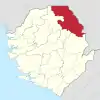 | Bombali District | المحافظة الشمالية | ماكيني | 7,895 | 408,390 | 606,544 | ![]() |
