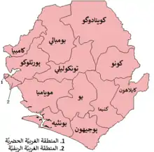 | Kenema District | المحافظة الشرقية | كينيما | 6,053 | 497,948 | 609,891 | ![]() |