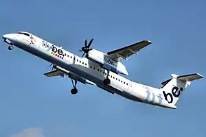 | طائرة إقليمية تابعة لخطوط فلاي بي، من طراز بومباردييه كيو 400 (Bombardier Q400) |