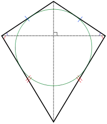 - تكون الطائرة الورقية رباعي دائري، إذا وفقط إذا كانت مشكّلة من مثلثين قائمين.[1]