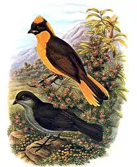 طائر التعريشة الذهبي (الاسم العلمي: Prionodura newtoniana)، نوع أحادي الطراز من طيور التعريشة. يستوطن كوينزلاند في أستراليا، حيث يقتصر وجوده على منطقة أثيرتون.[4]