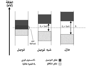 بالنظر إلى الشكل 1 يمكن دراسة "مستوى فيرمي " في المواد الصلبة المختلفة: