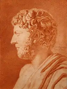 لوحة فرنسية مرسومة بالطباشير الأحمر. الخلفية نادرة نوعاً ما نظراً لتلوينها بشكل كامل