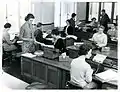 مكتب التحرير الرئيس لإحدى الشركات النيوزلندية، عام 1959م. وظيفة العمل كمحرر تتطلب سرعة كبيرة في إنجاز كمية من النصوص.