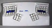 لوحة مفاتيح من نسق كويرتي. يُلاحظ فيها انحناءات المفاتيح بسبب كونها أرغومونية.
