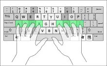 الوضع الافتراضيّ للإصابع في نظام الكتابة باللمس على آلةٍ كاتبةٍ قديمةٍ.
