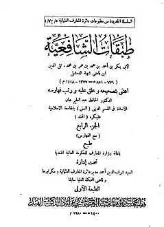 - ابن قاضي شهبة. طبقات الشافعية. الطبعة الأولى، وزارة المعارف للحكومة العالية الهندية، حيدر آباد (الهند) 1400 هـ، 1980 م.
