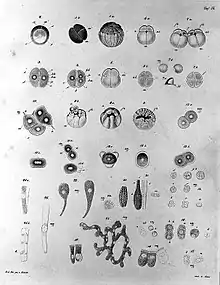 يؤدي الإخصاب إلى تكوُّن البيضة الملقحة. أثناء المرحلة التالية، تُحوِّل الانقسامات الفتيلية (الانقسامات الخيطية) البيضة الملقحة إلى كرة خلوية مجوفة، هي الأُرَيمَة (كرة خلوية وحيدة الطبقة تحيط بجوف فيه سائل في بواكير تكوُّن الجنين). يخضع هذا التشكل الجنيني المبكر إلى مرحلة تدعى تَكَوُّن المُعَيدَة، ليشكل المُعَيدَة (مرحلة جنينية تتلو الأريمة) مع طبقتين أو ثلاث طبقات (الطبقات المنتشة). في جميع الفقاريات، تتمايز هذه الخلايا السلف إلى جميع الأنسجة والأعضاء البالغة.[5]