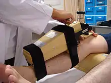 ![]() جراحة العظام جزء كبير من الطب الرياضي ، وإصابات الركبة موضوع مشترك. هنا يتم اختبار التراخي الأمامي الخلفي لركبته. | |