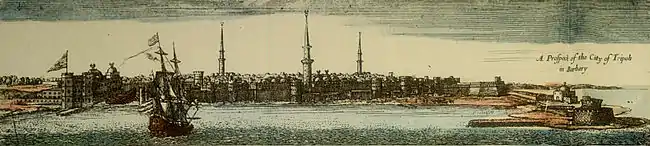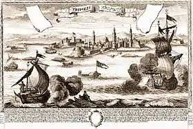 رسم لدخول الأسطول العثماني لطرابلس عام 1551