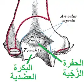 محفظة مفصل المرفق ، نظرة خلفية.