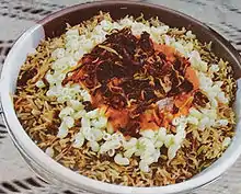 - الأطباق الخليجية: تتميز أطباق دول الخليج العربي باهتمامها باللحوم كما يكثر استعمال التوابل والبهارات في الاكل الخليجي تاثرا في ذلك بالهند نتيجة التجارة المتبادلة بينها وبين دول الخليج العربي منذ فترة بعيدة، ومن الأطباق الخليجية المعروفة "الكبسة"