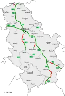 في صربيا، يوجد ما يقرب 800 كم من الطرق السريعة وحوالي 1200 كيلومتر مخطط لها وقيد الإنجاز.