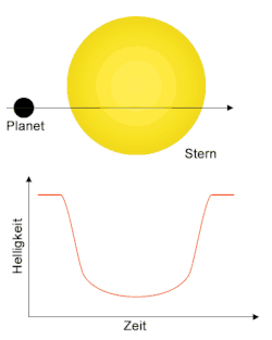 طبقا لهذه الطريقة لا تتم مشاهدة الكوكب مباشرة، ولكن يشاهد بطريقة غير مباشرة عن طريق قياس تغير شدة لمعان النجم الذي يدور الكوكب حوله.