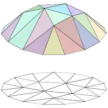 من أجل المسألة P2 نحتاج أن تكون عبارة عن مجموعة من التوابع من . في الشكل الموضح على اليسار، يظهر تثليث مضلعي لمنطقة مضلعية من 15 ضلع في المستوي (في الأسفل)، والتابع الخطى المجزأ (ملوناً، في الأعلى) لهذا المضلع الذي يكون خطياً على كل مثلث من التثليث. حيث أن الفضاء سيحتوي على توابع تكون خطية على كل مثلث من التثليث المختار.