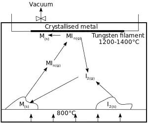 - van Arkel, A. E.; de Boer, J. H. (1925). "Darstellung von reinem Titanium-, Zirkonium-, Hafnium- und Thoriummetall". Zeitschrift für anorganische und allgemeine Chemie (باللغة الألمانية). 148 (1): 345–350. doi:10.1002/zaac.19251480133. الوسيط