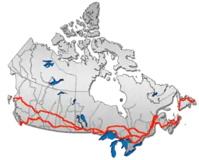 | طريق عابر كندا بفرعيه الرئيسان اسم آخر = Trans-Canada Highway | |
