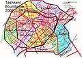 تنقسم أحياء طشقند إلى إحدى عشر منطقة هي:[21]