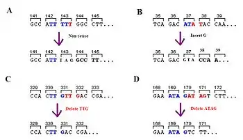 - حذف قاعدة واحدة : A (القاعدة الأولى في الكودون الثالث)