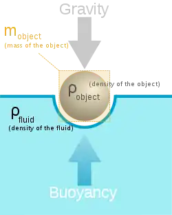 - إذا كان الجسم مصنوع من مادة ذات كثافة أعلى من المائع، كجسم من حديد مثلا في الماء، يؤدي إلى غرق الجسم في السائل أو الغاز المحيط.