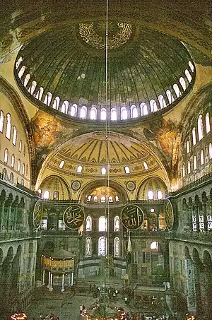 وجاءت الرسوم المستوحاة من حياة السيد المسيح، ومن الكتاب المقدس، أو ما سمي بالأيقونة البيزنطية لتزيين الجدران وقد نفّذت بمزج الألوان بمحلول الماء والصمغ أو الغراء وبزلال البيض على الخشب أو على الجبس بعد أن يجف وكذلك الفسيفساء المنفذة بمكعبات الحجارة أو الزجاج الملون البراق فوق أرضية زرقاء أو ذهبية وزينت كامل المساحات التي لا تطيق عين الشرقي أن تراها خالية من الزخرفة. كما وزينت الملابس والمذابح والعمد والجدران بالجواهر والأحجار الكريمة وصفائح الذهب والفضة، ونقشت المنابر وأسوار المحاريب وعلقت الأنسجة المزخرفة على الجدران وفرشت الأرض بالطنافس وغطيت المذابح والمنابر بالأقمشة المطرزة وبالحرير. فكان الفن البيزنطي وفير الألوان ودقيق الرموز وغزير الزينة وقادرًا على تهدئة الذهن وتنبيه الروح، لتتداخل فنون الرسم والتلوين والنحت معًا في مزيج يصعب فصله. ويمكننا مشاهدة آثاره في ”آيا صوفيا“ كمثال.