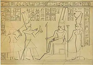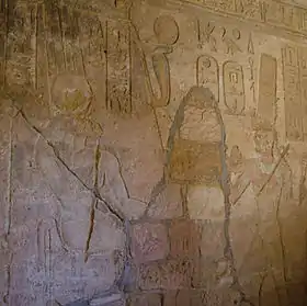 طهارقة متبوعاً بأمه الملكة أبآر في معبد البركل الغرفة الثالثة.