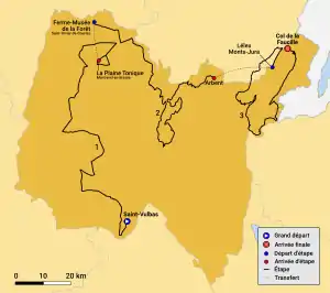 | مرحلة 3 | 20 مايو | ليليكس – Col de la Faucille [الإنجليزية] | مرحلة متوسطة | 133٫3 |