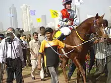 طوق أصفر حول عنق الحصان.