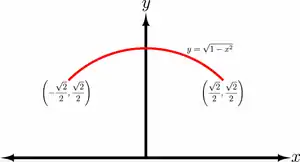 يختلف تقدير تربيع غاوس-كرونرود [الإنجليزية] خمسة عشري النقاط لهذا التكامل البالغ 1.570796326808177 عن الطول الحقيقي لـ: