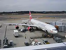 - ناقل جوي، ينقل أسطولها المسافرين نحو مطار كبير.