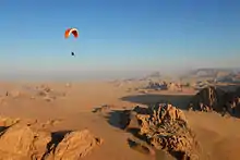 الطيران المظلي هي رياضة الهبوط بالمظلات وتقام لها مسابقات.[1][2][3] وهو طيران حر يبدأه الشخص بمفرده عن طريق الوثب من جبل عال، ويهبط بواسطة المظلة رويدا رويدا بحسب القوانين الايروديناميك للحركة في الجو، ويمكنه التحكم نوعا ما بحسب خبرته في مكان الهبوط ومرونته. وقد يكون بدلا من المظلة جناحان من القماش مثبت بهما حوامل يستطيع الشخص الاتكاء عليها ويكون معلقا تحت الجناحان. هذا الطيران المظلي يعتمد على طريقة الطيران الشراعي الذي لا تدخل فيه الآلة، بل يطير الشخص طيرانا حرا في الجو، يهبط ببطء ويتمتع بالطيران مثل الطيور وبجمال الطبيعة أسفل منه حتى يحط بهدوء على الأرض.