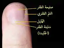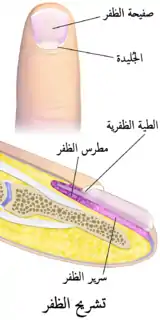 الظُّفُر أو الظُّفْر مادة صلبة تغطي بنان أصابع أيدي وأقدامُ الإنسانُ.[1][2][3] وتتكون أساس من مادة الكيراتين. وتوجد خمسة أظافر في كل يد وخمسة في كل قدم. وتصنف الأظافر كأعضاء إضافية في الجلد، وتنتج من خلايا موجودة في البشرة. وترقد أسفل الظفر منطقة طلائية تسمى بطانة الظفر (nail bed) غنية بالأوعية الدموية، مما يجعل الطبيب ينظر إلى الأظفر عند الفحص الطبي، حيث تبدو هذه المنطقة من خلال الأظافر الشفافة بلون زهري فاتح في الأصحاء، ويتحول إلى اللون الأزرق في حالة نقص الأكسجين في الدم في حالات مرضية.