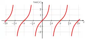 ![]() تمثيل دالة الظل في جملة الإحداثيات الديكارتيّة تمثيل دالة الظل في جملة الإحداثيات الديكارتيّة | |